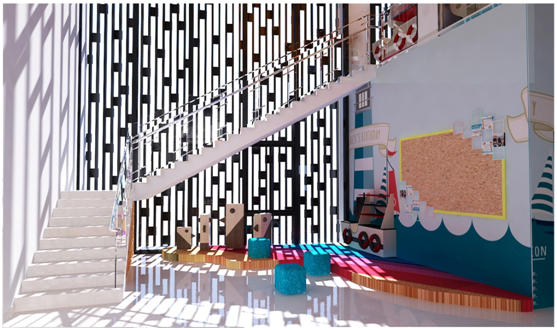 墙体是学校重要的立面空间,楼梯墙面在学校中扮演的实际上是隐形老师的角色,起着“润物无声”的作用,所以,楼梯墙面文化的打造也要向这方面靠拢,多设计一些让学生们容易接受的,清新活泼的东西,改变学生们被动的学习经验,使学生们主动对某件事物产生兴趣,进而去了解、探究、感悟。