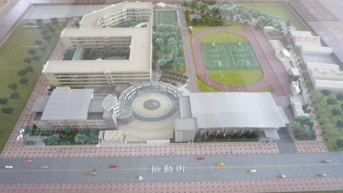 台北市信义国小,把学校的发展愿景用小火车,从右边穿到左边,中间有做了小隧道,然后有信义的小书包,通过学校的造景,让学生了解到他们将来学习和成长的方向。