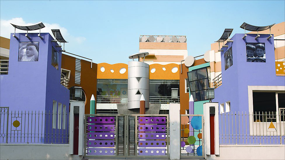 这是在新德里的一所学校,其学校设计有比较丰富的色彩。