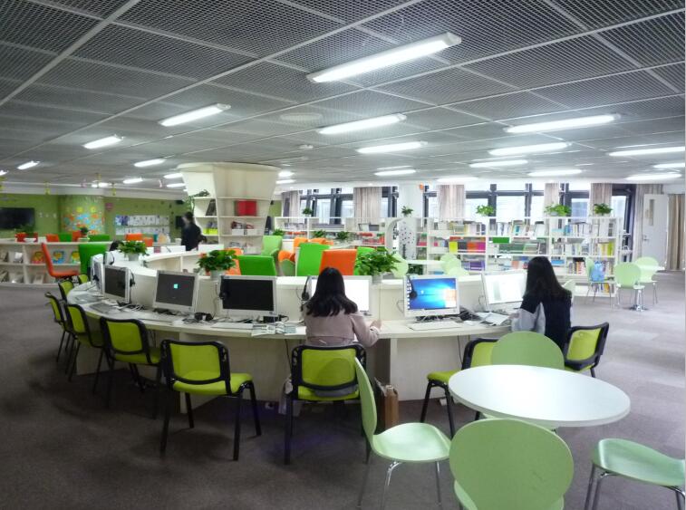 杭州时代小学图书馆做得很不错,我觉得是一个非常好的智能中心提供给学生。
