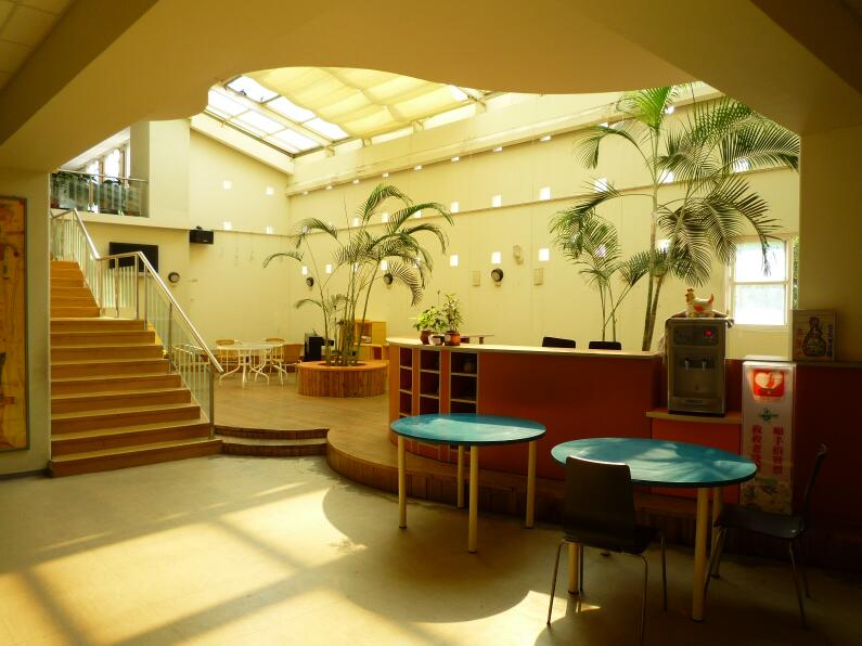 另外,学校里也要有很多学生在下课以后可以休憩的空间,如新竹市阳光国小的课后休闲空间和政大附中的屋顶休闲平台(利用屋顶做一个休憩空间的设计)。