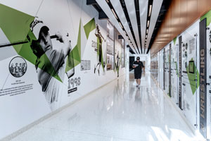 莱顿艺术体育综合大楼厅廊,描绘着过去13名体育名将校友的落地式壁画,称之为“英雄之墙”,用以激励学生,并传承与发扬学校特殊的体育基因。