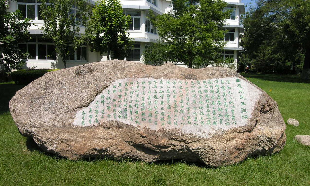 北京四中的训诫石,把一百年前的校长讲过的话,在一百年后的校庆的时候,把校长的话刻在石头上,以作纪念。