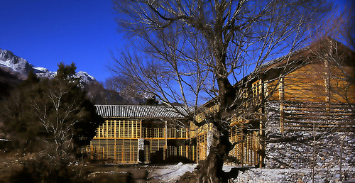 这是李晓东所设计的玉湖完小。玉湖完小建筑吸收并打破传统的纳西四合院建筑的布局,创造性地以一端的一棵古老的枫树为中心,采用“z”形布局,并将院落一分为二。乡土建筑的精华被提炼,并以形式和空间的方式表达出来。