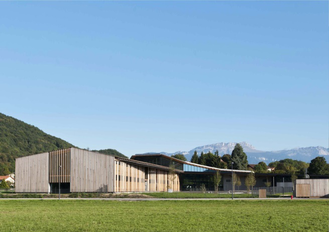 法国希朗高中(the Chirens High School)的设计与环境融合,尊重该镇建筑与乡村景观,校园兴建长而低,以裸露的木材作为壁板,外观不炫耀。