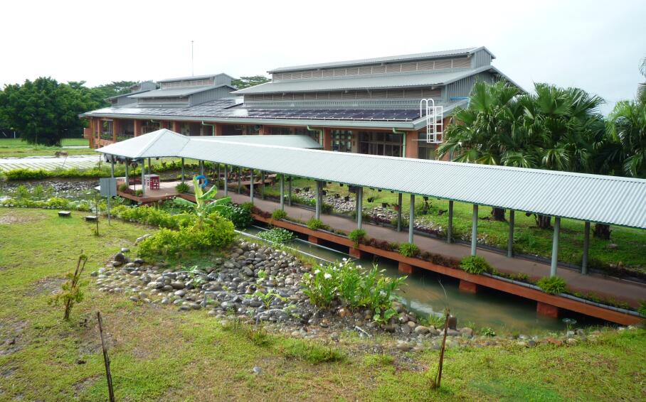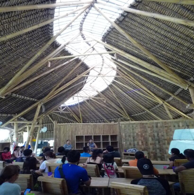 这是我在2014年的时候到的印尼巴厘岛的Green School,这个学校号称地球上最环保的学校。整个建筑物都用五年生的竹子做,2008年筹划,2009年开学,现在学生有四百多位,大概来自于全球43个国家。这个学校没有电灯,都利用自然的能源采光,做得非常环保。