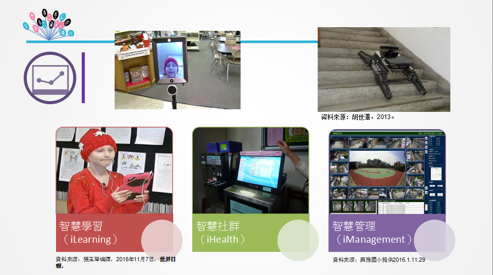 结合云端科技规划智慧教室、未来教室、资讯科技天文臺、网路天文臺(如臺北市南湖国小、创客教室(maker)、机器人教室、等,让数位教学和学习益增体验空间。