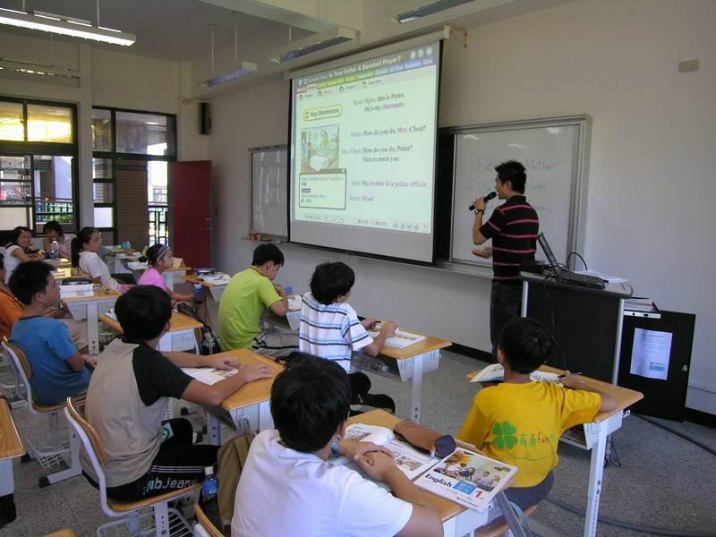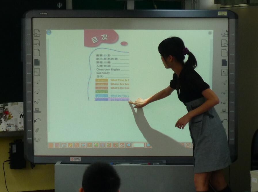台北市西园国小,运用了现在流行的电子白板来进行教学。