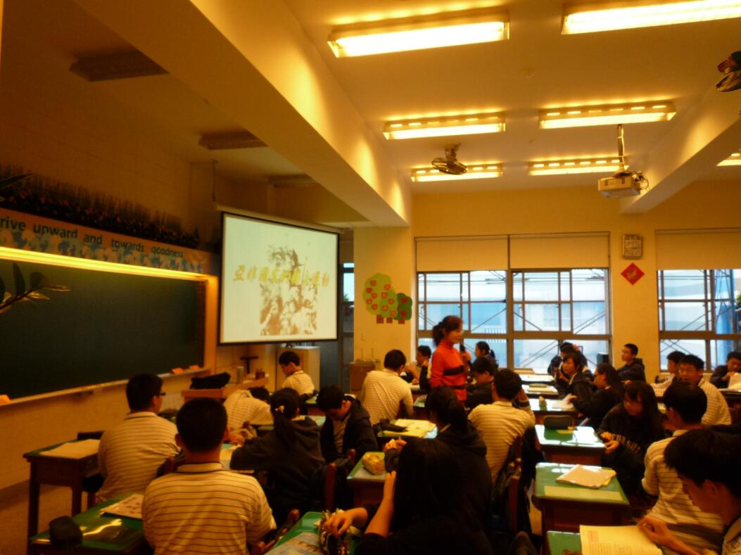 台北政大附中的教室,大屏幕放在教室中间。