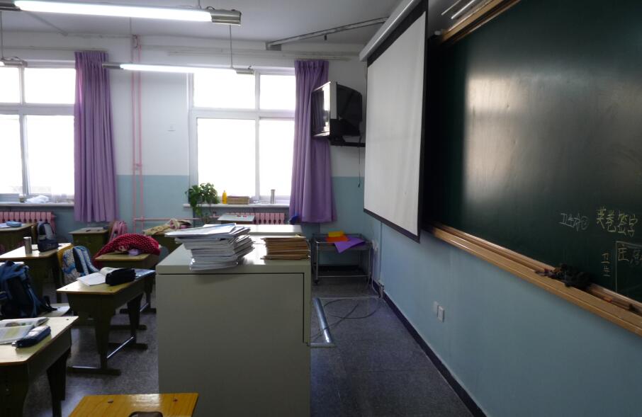 北京市万泉小学,以黑板为主,屏幕为辅,屏幕也放在教室侧边。