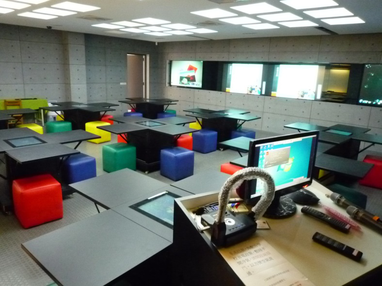 台北市南湖国小的未来教室,四个学生一个小组,安装有好几个屏幕,可以上去直接操作。
