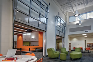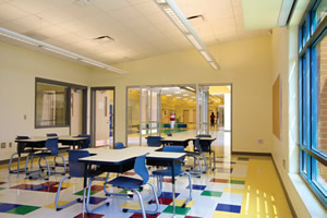 这是美国的一所小学,可以看到新盖的学校,建筑物非常通透,而且色彩的设计也兼顾到学生的需要。