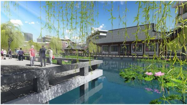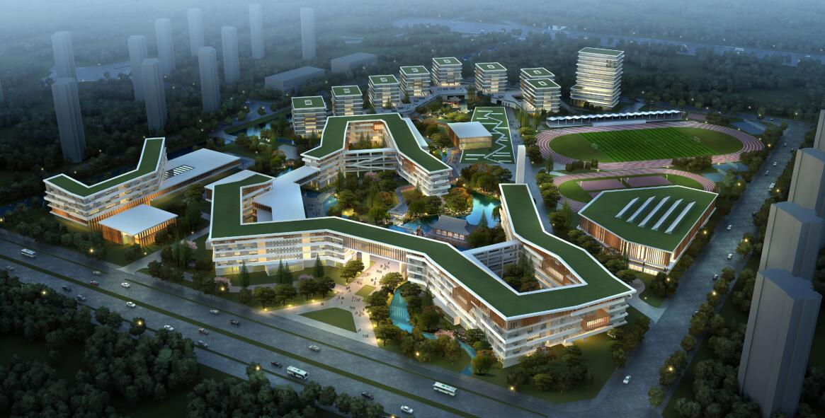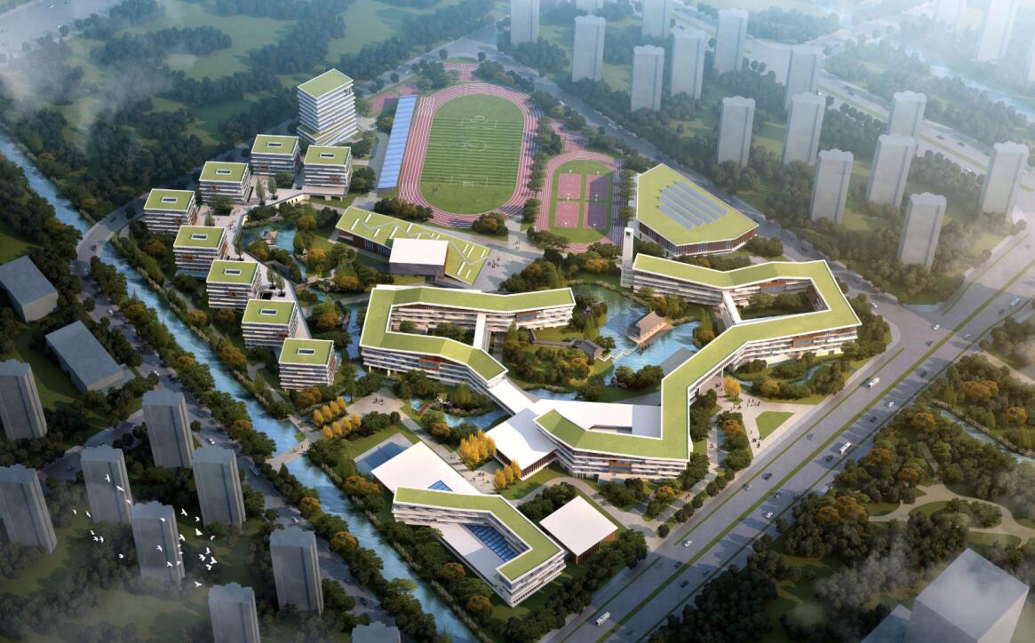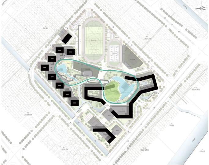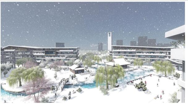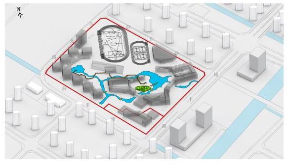 园林水系的介入,将各片区进行了柔性的连接。山水园林体现了瑞安中学的历史传承,也与新建筑进行古典与现代的对话。